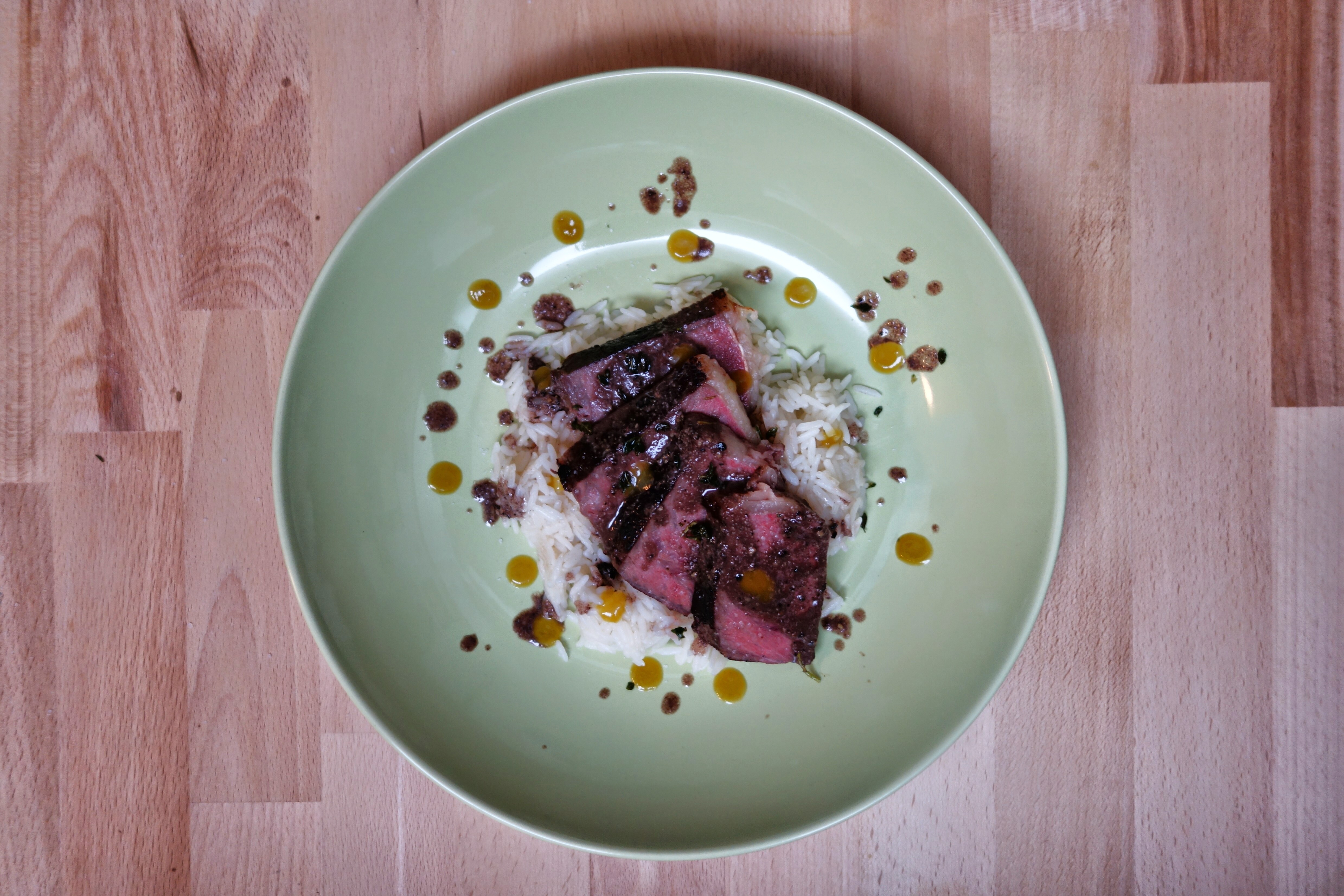 • Sear in a scorching hot pan (butter + herb optional)